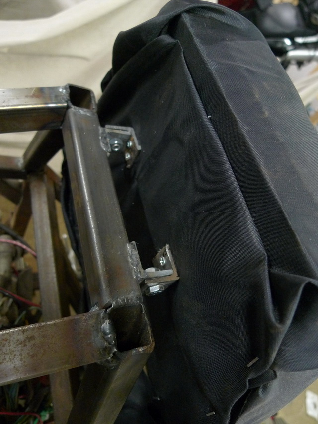All set with that, I cut some simple brackets out of 1" x 1/8" angle iron, and mounted them to the back.