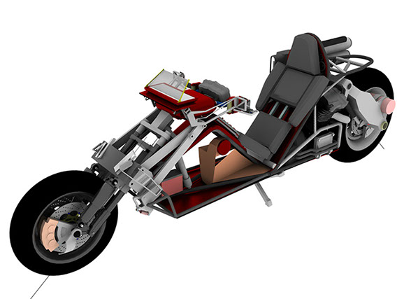 fully functional high performance recumbent motorcycle inspired by Kaneda's ride in "Akira"