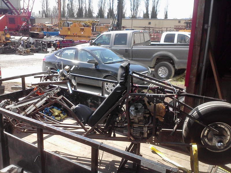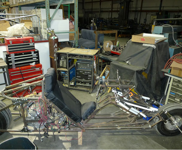 In the Summer of 2013, we had to move our entire shop out of the 10,000 sf facility we had been in for years into a 2,200 sf facility about 10 miles away. Here is my bike project loaded up and being moved... again...