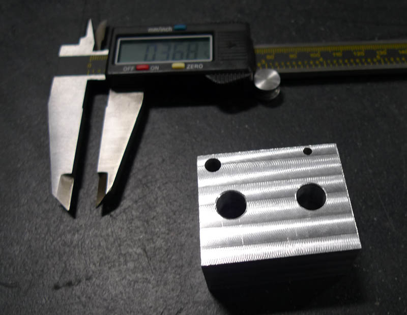 So here is an aluminum block machined square with two holes in it for bolts. The intention is to bolt the work piece to this, and then clamp this down inside a machinist jaw. It's interesting in machining that sometimes the most difficult problem is how to hold a part while you are machining it. A good machinist will keep all the fixturing in mind when designing the part, and our machinist joked that he would often get parts that it was just completely impossible to clamp it down. Sometimes it can be quite a puzzling challenge.