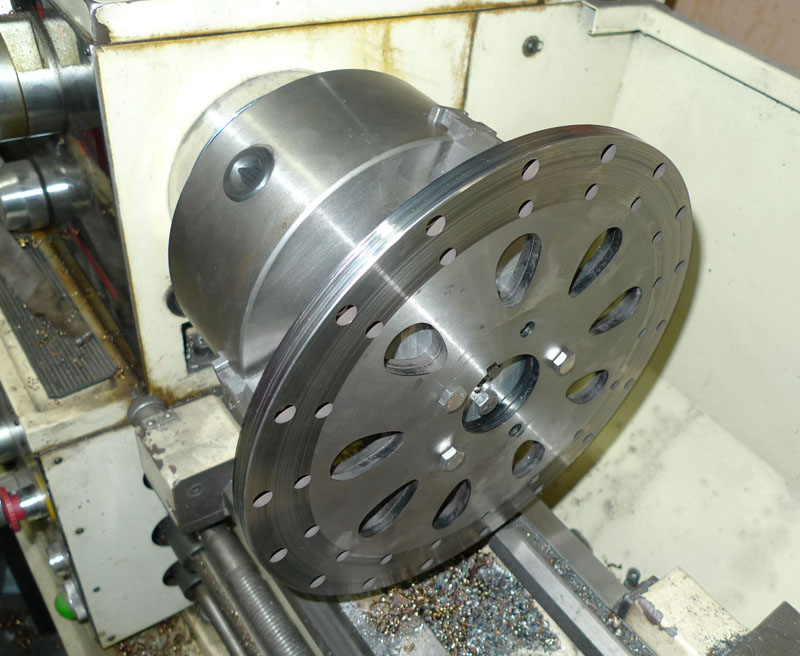 The rotors I had around the shop didn't have a large enough internal diameter hole so I put them on the lathe to open that hole up