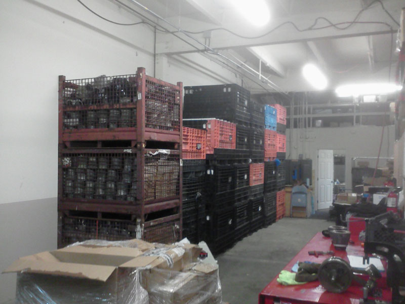 Making room for almost 30 full pallets of motorcycle engines cases, heads, and cylinders. Each palette weighed over 1,000 lbs. Because our palette jack was the wrong size, there was a lot of hand dragging these pallets across the floor of the truck that brought them. Man what a work out. Cross Fit take note