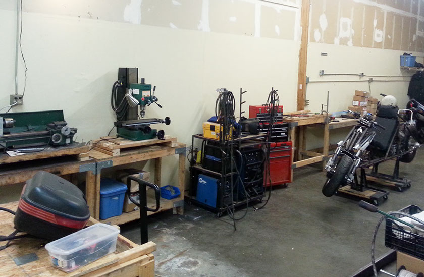 The new workshop, I've only moved a few things so far, including the V-Strom I ride until my bike project is done. I'm sick of moving my shop, but hopefully this is the last time. This is the 7th time I've moved my workshop - thanks to layoffs, house sales, and a cross country move. It has been an interesting struggle with many ups and downs. Just trying to maintain a functional workshop is a large struggle of this project - but some good things are in place now. A decent shop, great tools, a close relationship with Crazy Horse with a ready supply of their excellent V-Plus motor.