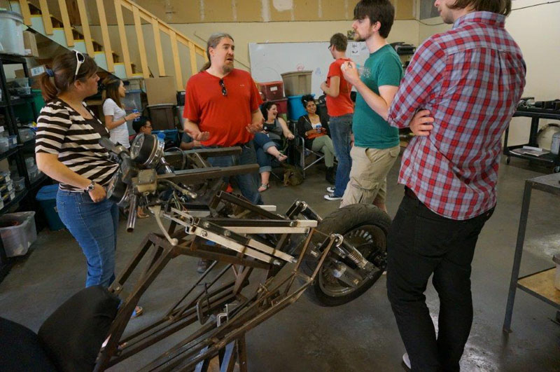 Shortly after that I had a workshop warming party / birthday party. Here I am explaining some of the details of the design to some friends.