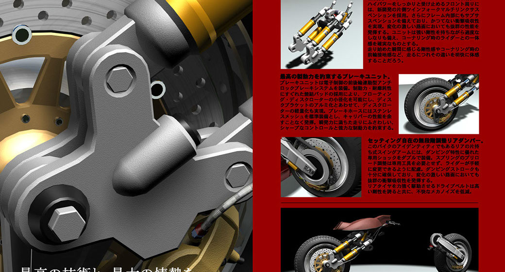 The fantastic 3D models from Kino at http://www1.odn.ne.jp/cbt14030/ which integrate some real world motorcycle design elements.