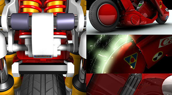 3D JOIE's excellent model of the motorcycle Kaneda rides, this is probably the most photorealistic and movie-accurate depiction I've seen yet. Please check out the authors site for more pics and videos source