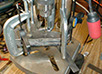 The virtual pivot point bars went through a few redesigns, along with the fork and steering column. Initially, they were to look like the piece in the previous page. The total length from one end to the other was identical to the counterpart bar above, the bend in the bar went around the Fork T's when they were turned. Some further work on this design revealed some simpler ways to accomplish that, and so happened to make the overall fork design, which you'll see in a later update, be 1) easier to build 2) safer 3) look more like the actual fork is presented in the schematics and drawings of the Akira vehicle. The entire VPP bar assembly was subsequently remade with cold rolled 1/4" x 1" bars and required no bends or welds.
