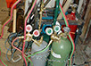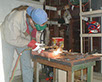 First, I had to create the brackets which mounted the VPP mechanism to the frame. This required cutting a specific shape out of a large plate of steel. So I had to learn... Torch Cutting. Hence my new purchase, an oxy acetelene torch. This ran me about $600 ready to use. Torches are usefull for brazing, cutting steel, heating metal, and welding Aluminum, Steel, and other metals the basic Mig welder will not. Here I am doing my first practice cuts.