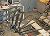 The culmination of practice cuts. It takes a steady hand and a slow speed to cut well with an Oxy Acetelene torch. It took me a few weeks to get a consistently decent with the torch. So onto the virtual pivot point frame mounting brackets.