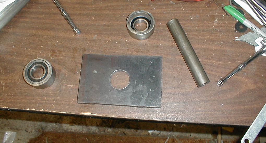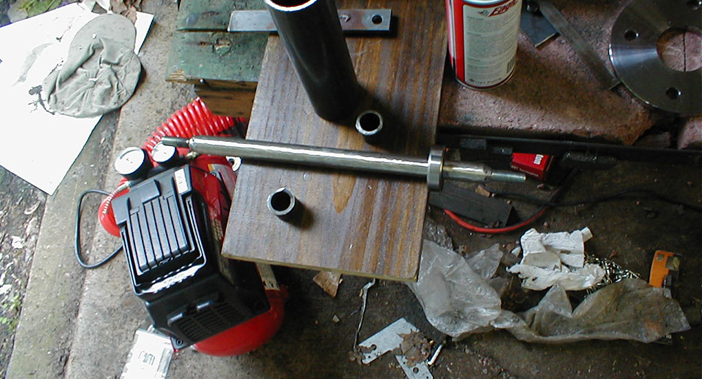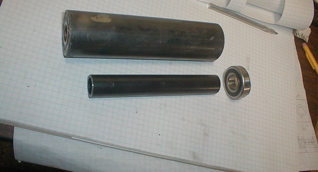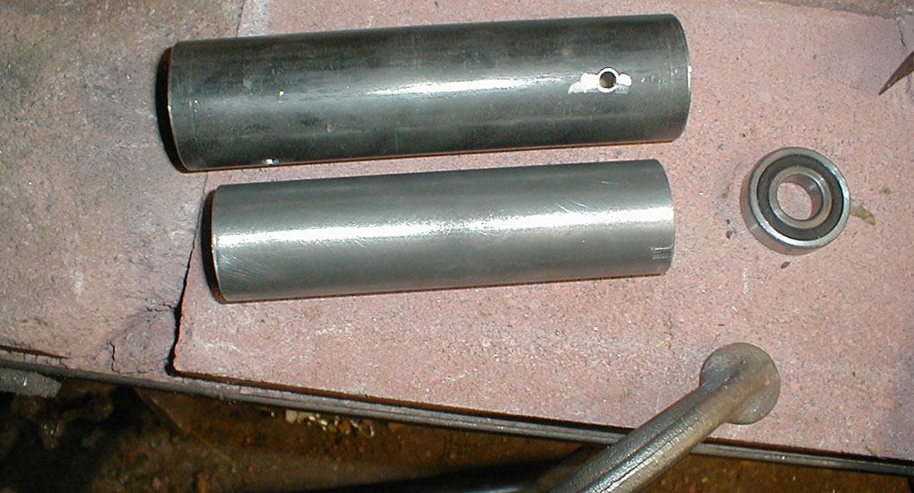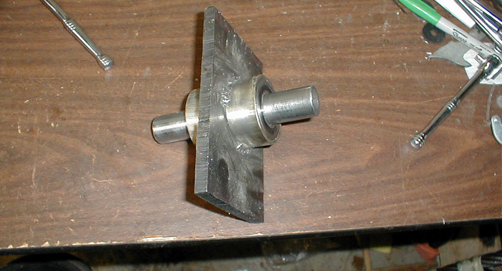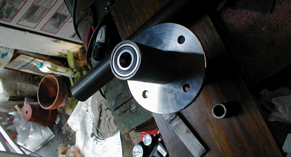 Spindle with the inner mounting cylinder. Basically larger outer diameter cylinder welds to the tire mounting plate, and rides around the spindle with bearings.