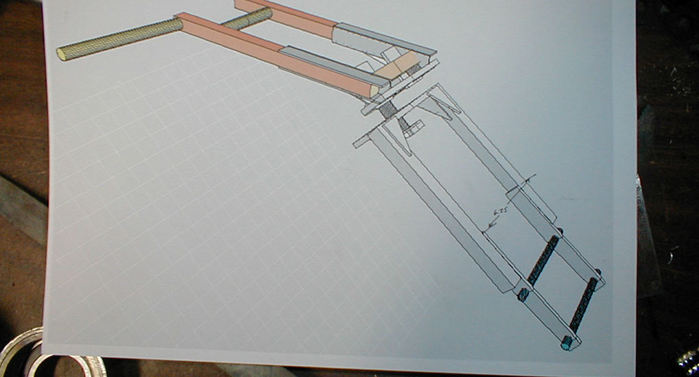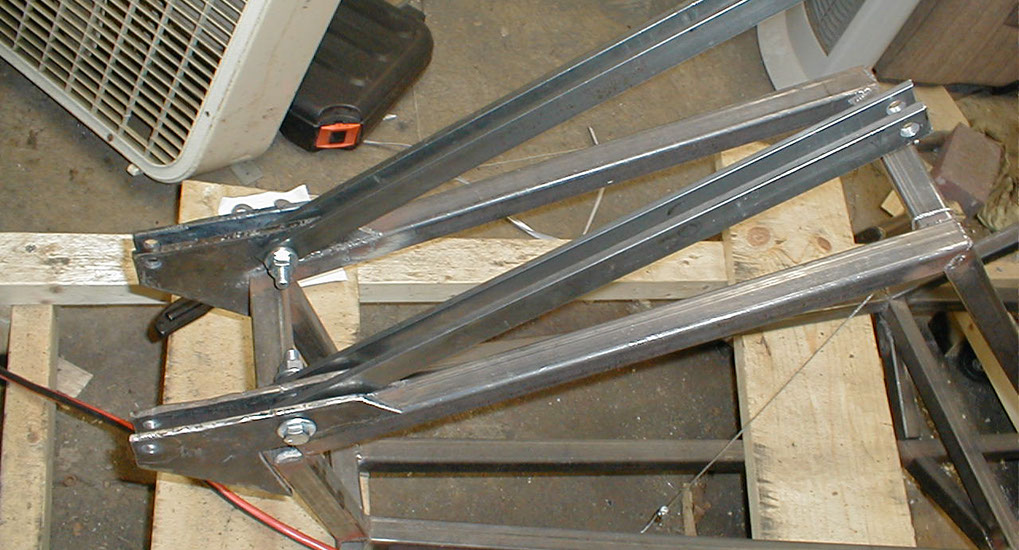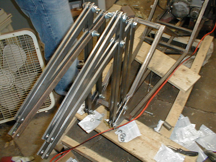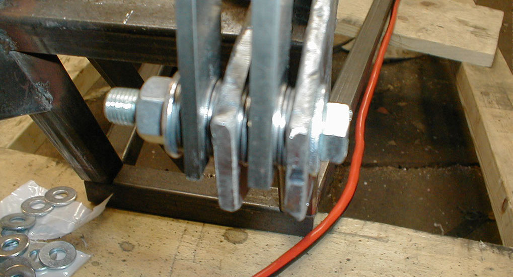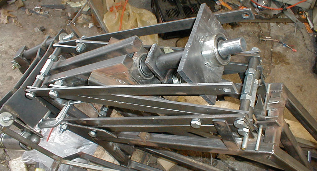 Speaking of the virtual pivot point, based on single 1" x 1/4" cold rolled steel bars, it had too much lateral flexibility. I doubled the bars up and added real thrust bearings.