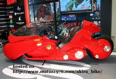 Let me thank everyone who emailed me about the NEO-FUKYOKO project unveiled at the Tokyo Motorcycle show. For those who don't know about it an allegedly functional motorcycle inspired by Kaneda's bike from Akira was presented. As I have been saying to people who have emailed me on the design of an Akira inspired motorcycle, there is more than one way to do it. It is interesting to see an actual Akira inspired bike which has a drivetrain and powerplant.