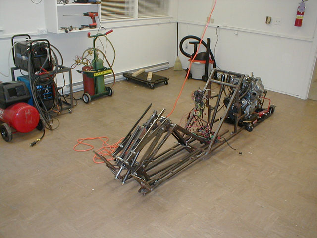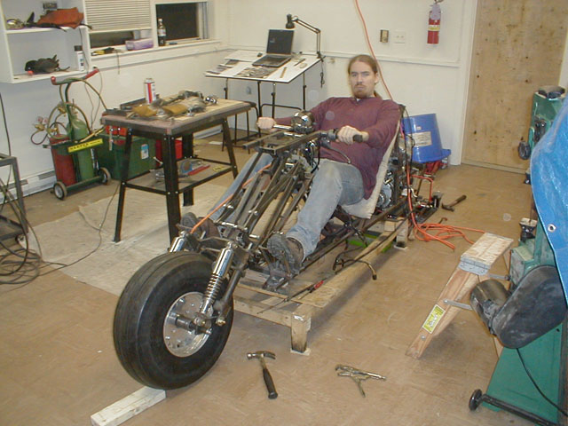 Bad luck struck around this time, I got laid off from my nice Pfizer IT job. Big cut-backs at the company, and not alot of other big IT employers in South Eastern CT. I regrouped, rented my house to my parents, moved in with my brother, and rented a small workshop. Amazingly I was able to fit my disassembled bike into the back of my Subaru. Nice!