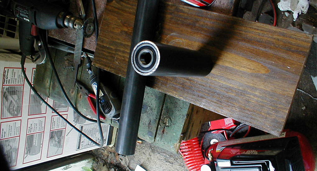 Spindle construction. The outer tube has an inner diameter equaling the outer diameter of the bearing. The smaller cylinder is basically a spacer. With bearings on either end, the whole thing would slide into the larger outer diameter tube.