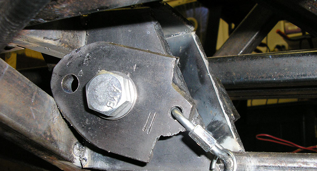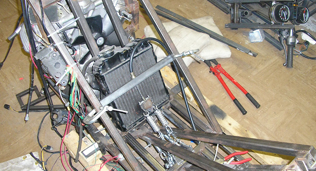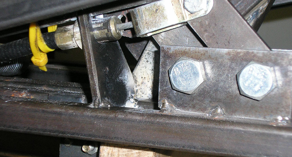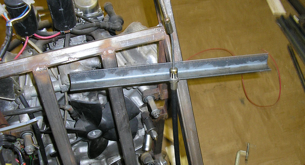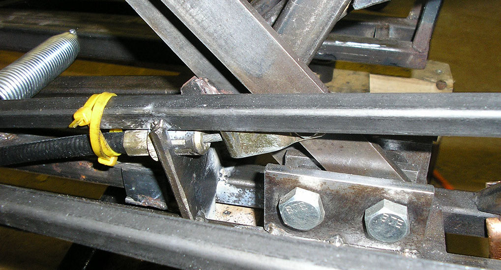Here it is welded in place. You can now see the control cable mounted to one of the parallel bars as well.