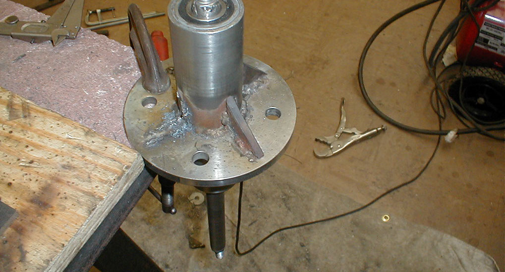 The new front wheel & hub & caliper mounts with brake calipers mounted.