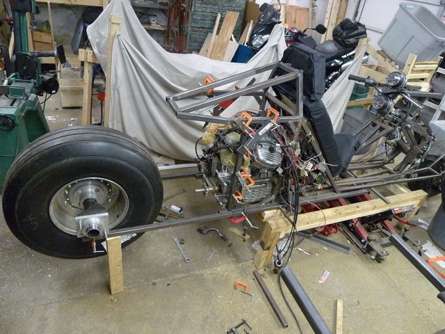 As you can see, the rear frame of the prototype still needs quite alot of work, this has not been finished welded because the drive train is still being determined and then will have to be constructed, and this prototype will be a hardtail (no rear suspension). The current state of affairs...