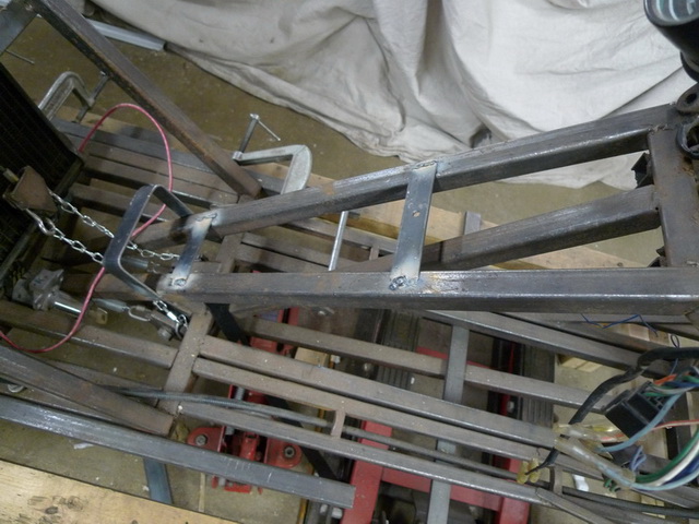 I then welded complimentary brackets onto the motorcycle frame, here are two of them jigged up