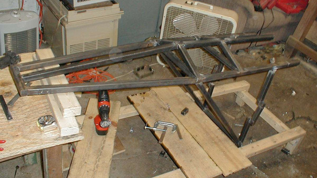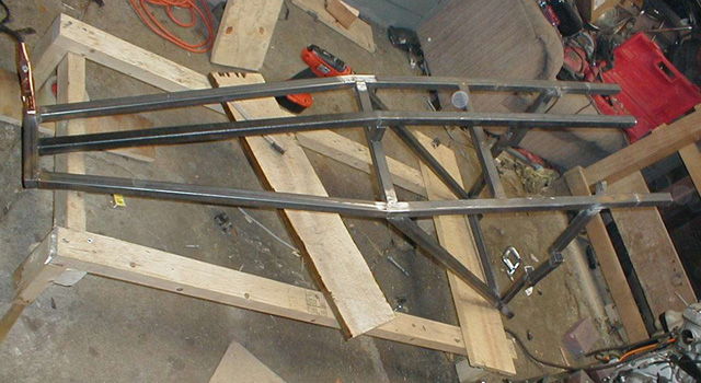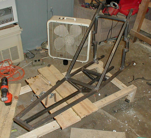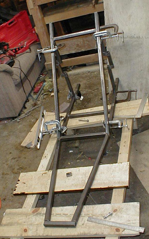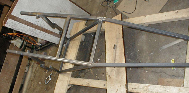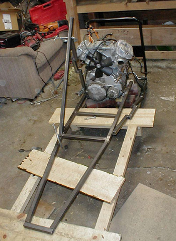 After being tack welded. Note the engine mounting points just above and below the exhaust port.