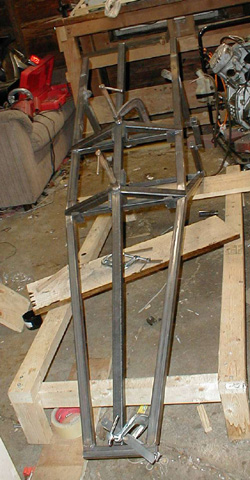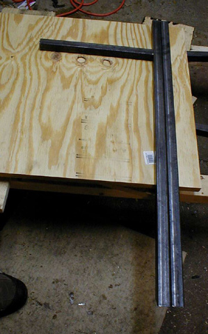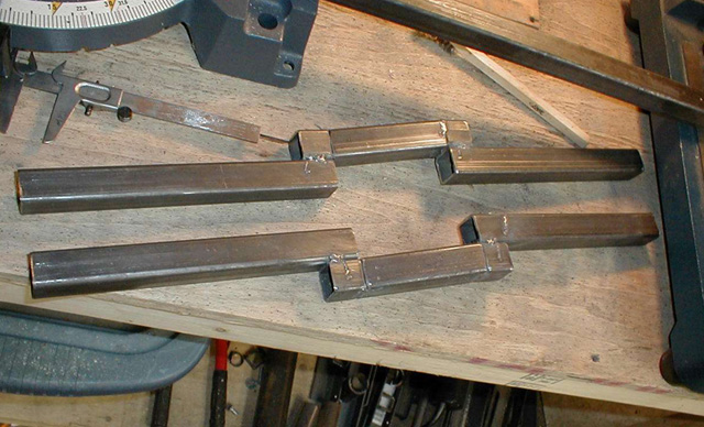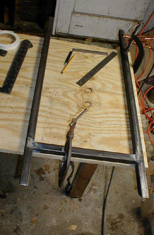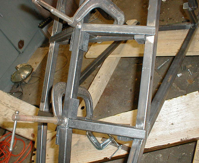 Here the horizontal bar and the side pieces are held in place and then tack welded.