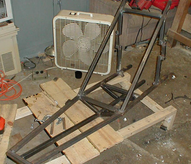 This is where we left off last time, the frame bottom and rear were tack welded.