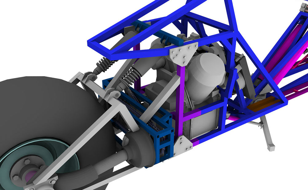 Once the drive system has been demonstrated, a longer version will be added along with a single sided rear swingarm. This will complete the functionality which will be included in the final version of the bike.