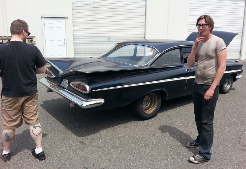 Two of my coworkers at my new job helped me move, here we are in back of the old shop with Matt's 59 Bel Aire. Many thanks to these guys for helping me move, even after I'd only known them for a few months.