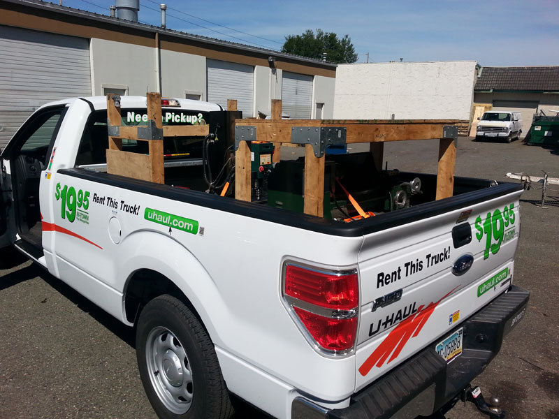 One of 8 total loads to the shop. Here the mill and lathe are in the back of the pickup, along with their respective workbenches.