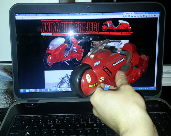 Fan of the project Carl sent this image in of his Kaneda's bike in front of my project web site. I love this picture! If you have one of the models and Kaneda's ride, take a picture like this and send it in.