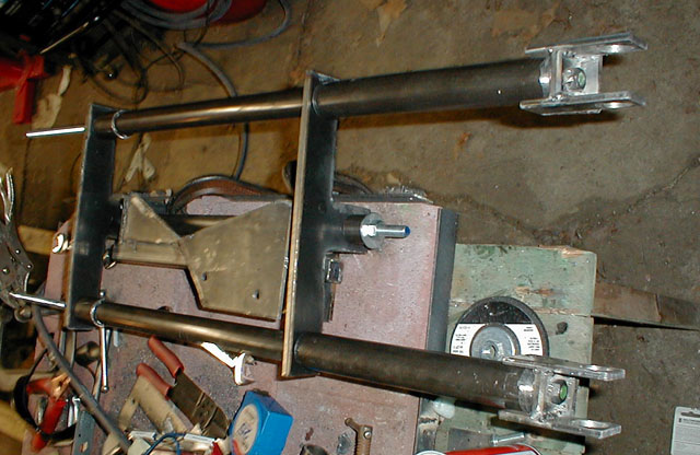 Here the suspension mounts are jigged, alinged, and ready for welding.