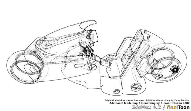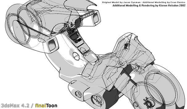 3D JOIE's excellent model of the motorcycle Kaneda rides, this is probably the most photorealistic and movie-accurate depiction I've seen yet. Please check out the authors site for more pics and videos source