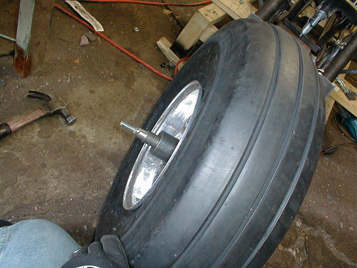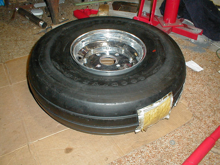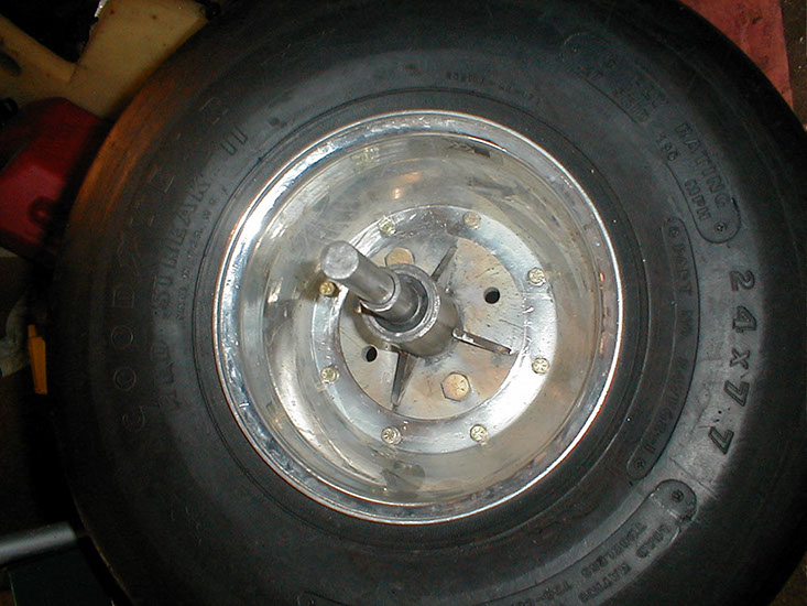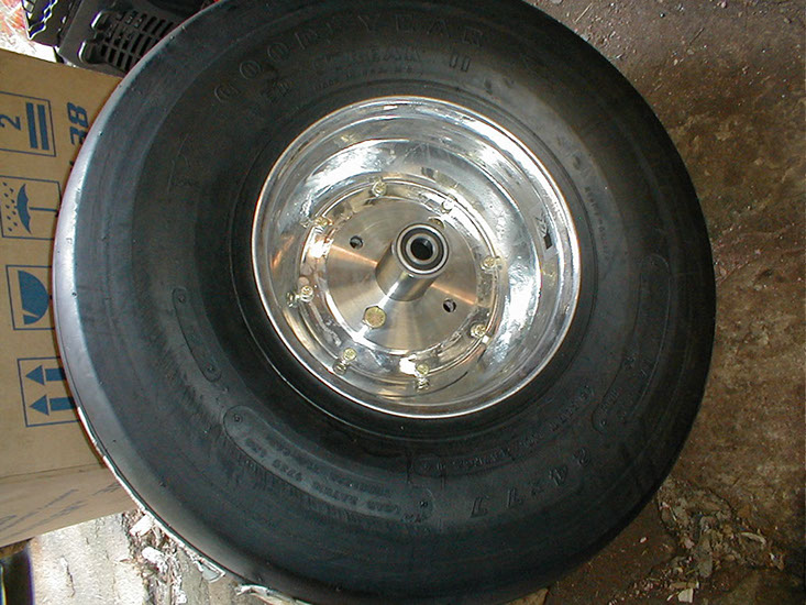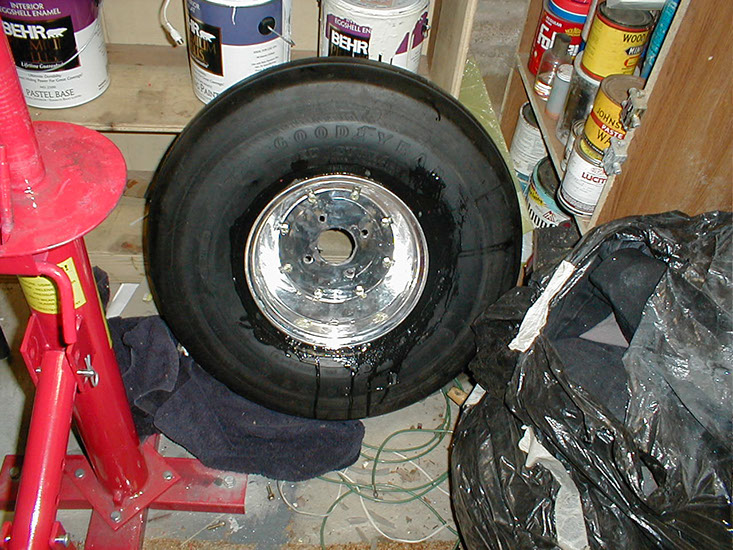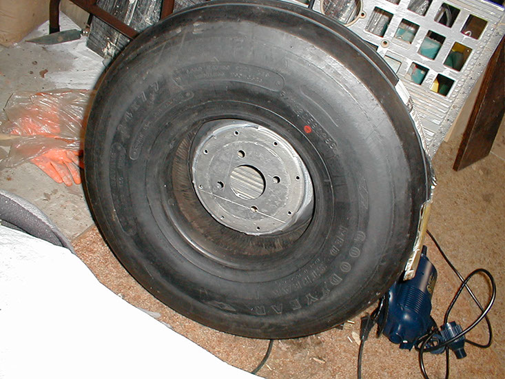Sealing the hub mount plate to the rim with silicon. Split rims are much easier to mount, and I didn't have the hydraulic tire mounting machine for aircraft tires. But split rims are harder to get an airtight seal with.