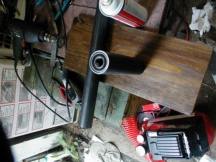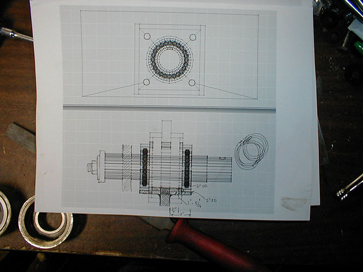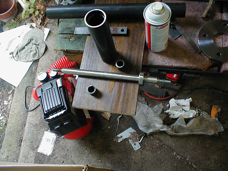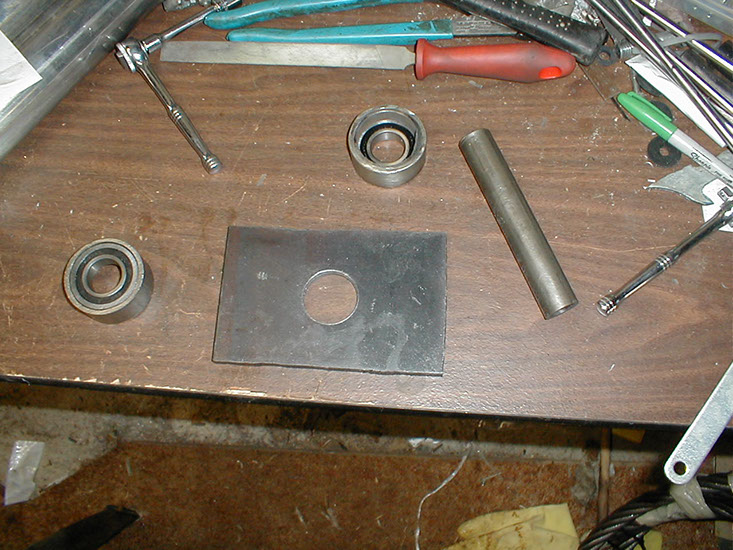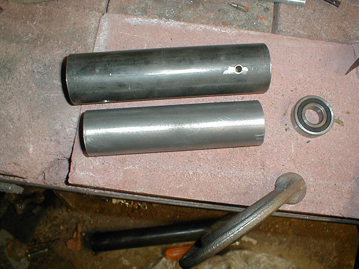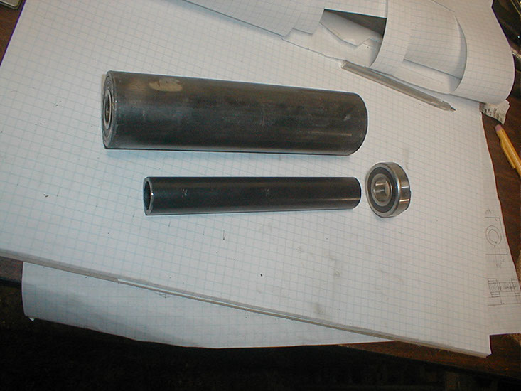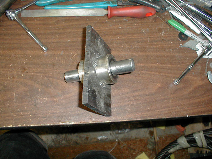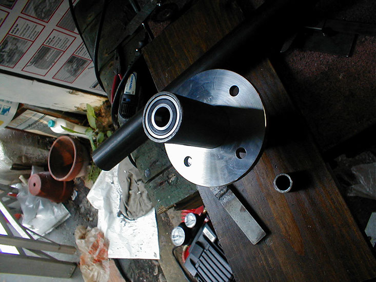 Spindle with the inner mounting cylinder. Basically larger outer diameter cylinder welds to the tire mounting plate, and rides around the spindle with bearings.