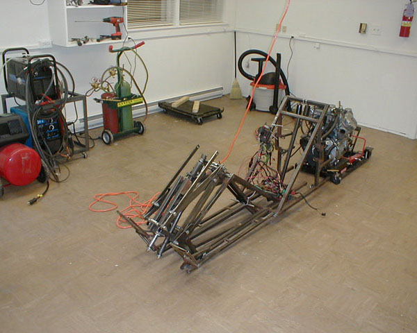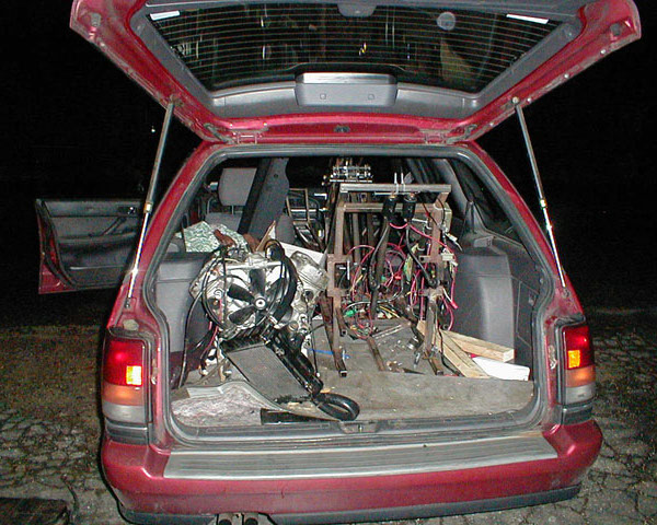 Bad luck struck around this time, I got laid off from my nice Pfizer IT job. Big cut-backs at the company, and not alot of other big IT employers in South Eastern CT. I regrouped, rented my house to my parents, moved in with my brother, and rented a small workshop. Amazingly I was able to fit my disassembled bike into the back of my Subaru. Nice!