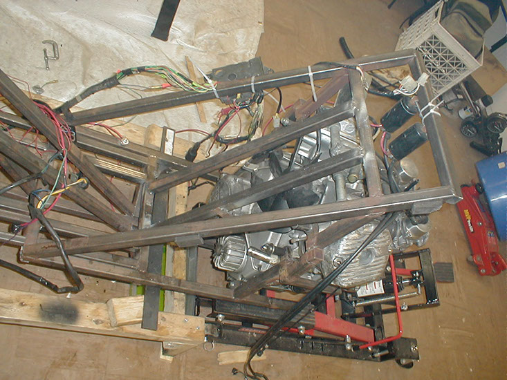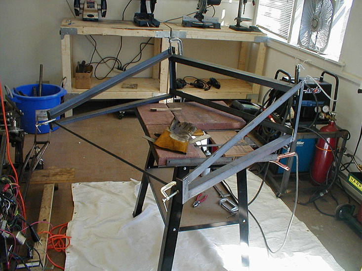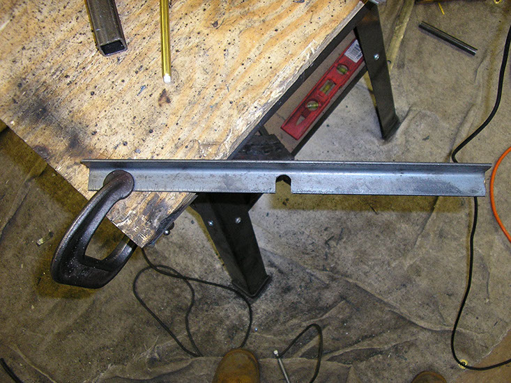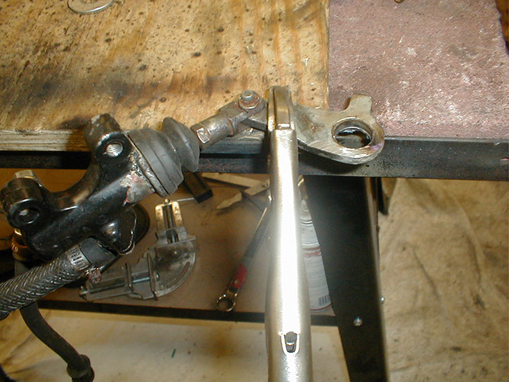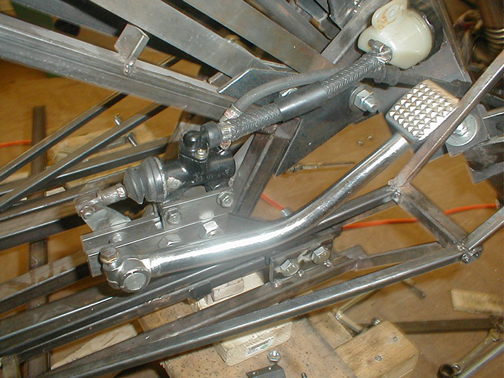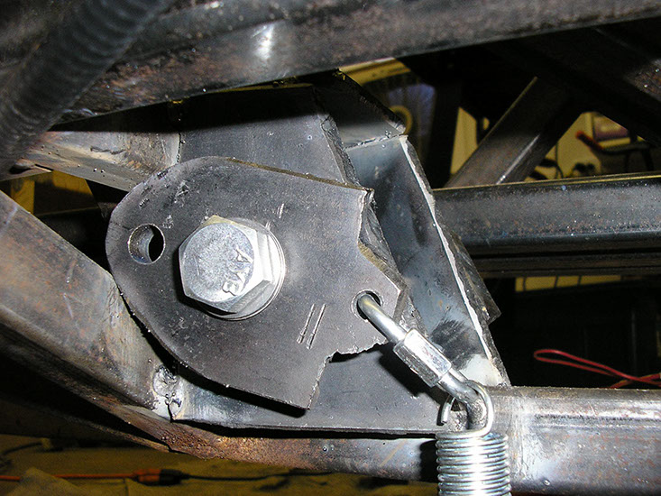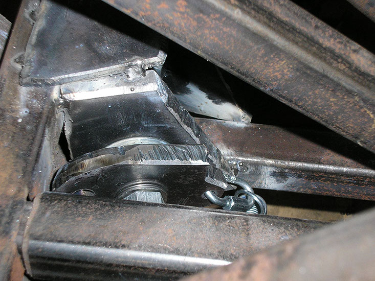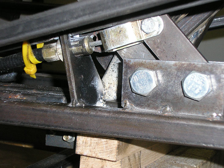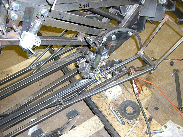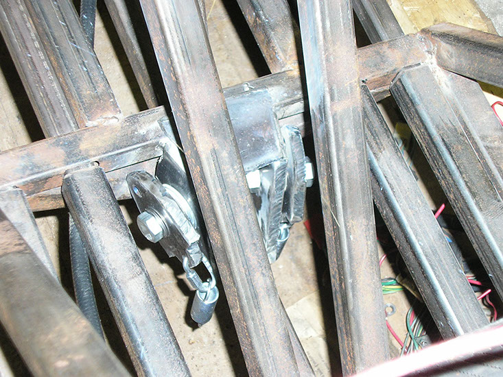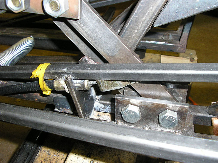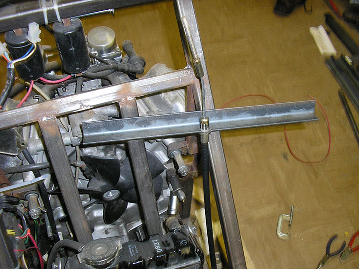 Here it is welded in place. You can now see the control cable mounted to one of the parallel bars as well.