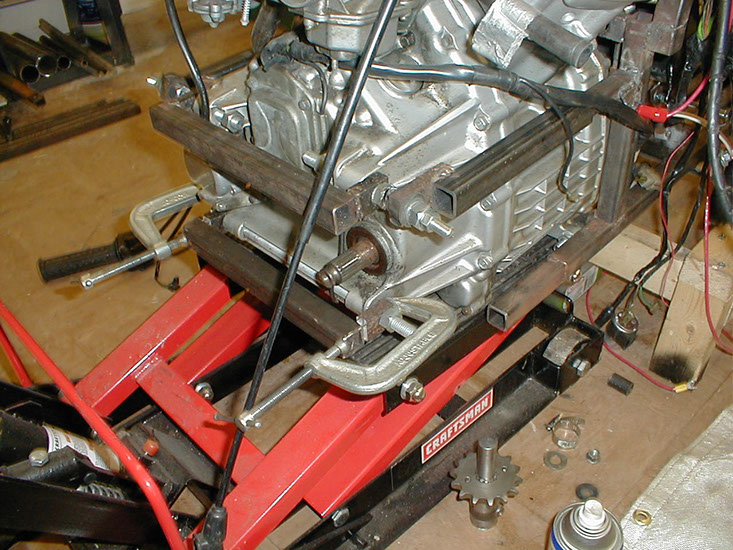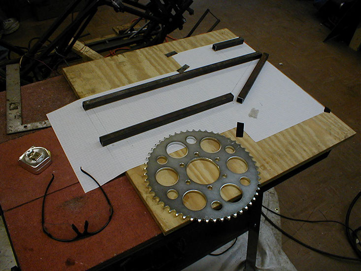 Getting started on the sprocket gear reduction cage. Since my wheel is larger and bike is heavier than the CX500, I'm reducing the gearing for the final drive.