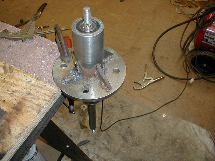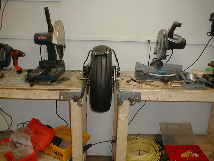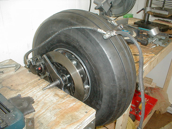 The new front wheel & hub & caliper mounts with brake calipers mounted.