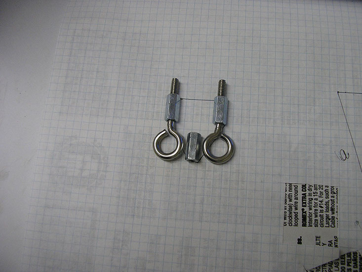 The eyed hooks go to the left and right center stand respectively, while the threaded nut in the middle will attach to the control cable.