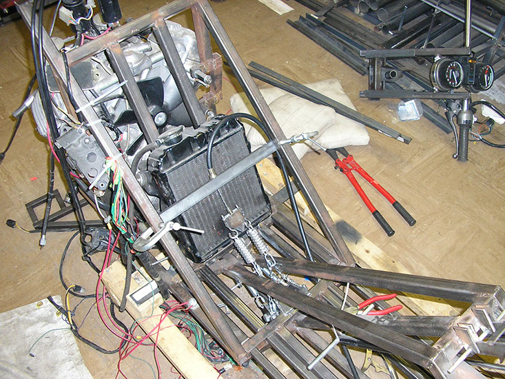 These two main bars were added in front of the engine for additional triangulation and strength.