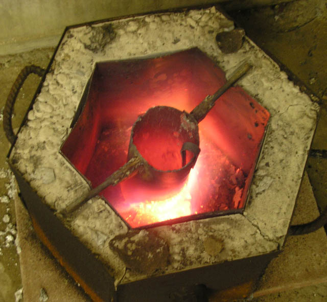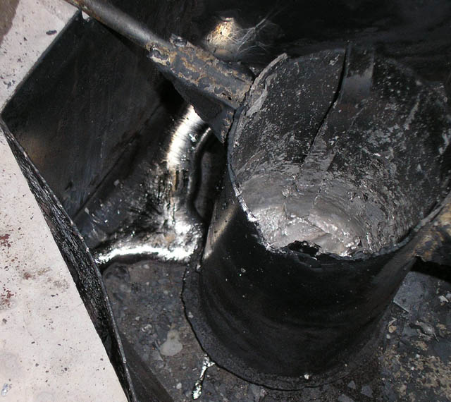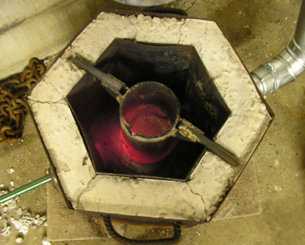 The molten aluminum actually appeared to 'punch' holes through the crucible. There were three holes, two on this side, one on the opposing side. Each was about the same time, it was odd they all occurred within a few seconds of each other.