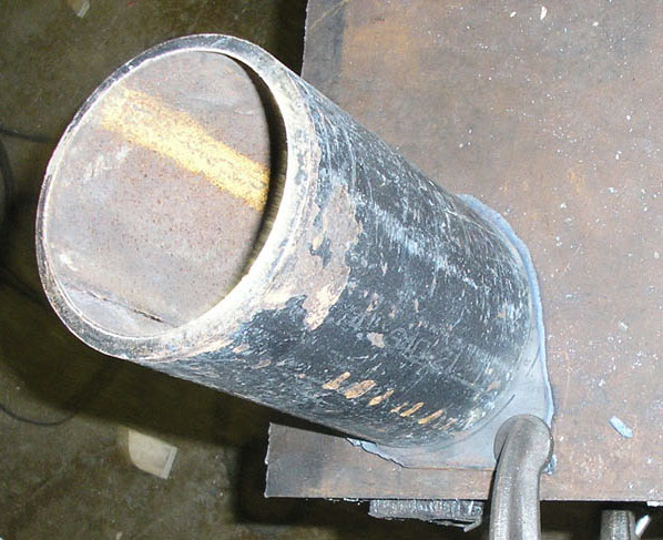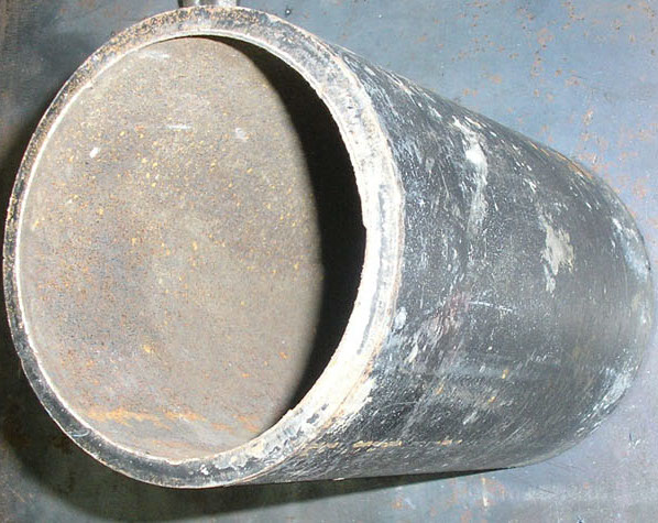 I was hoping to find some 5" or 6" diameter threaded steel pipe to use as an easily replaceable crucible. I visited a few plumbing supply stores with no luck. One found 5" steel nipples and an end cap. I told him what I was using it for (everybody seems to automatically get suspicious and think you are making a pipe bomb or something) so he's typing away to look up the price, then says "...Oh, ... you don't even want to know how much these cost" $45 each! Wow, no thanks. He actually recommended a nearby scrap steel place. I went there and found this great 5.5" diameter thick walled steel pipe, about 6' of it, for $9! Excellent.