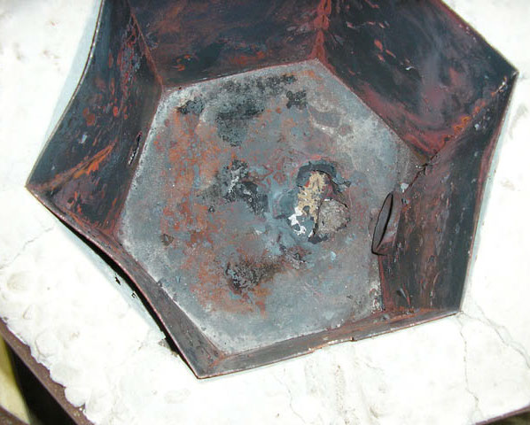 The sorry state of the kiln, a hole has burned into the bottom plate.