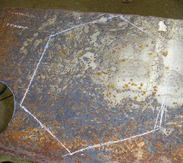 After cleaning. Notice you can still see the pen scribe marks from the pattern.