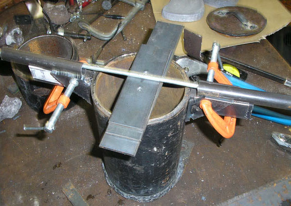 Back to the crucible then. Here is the hanging bars being jigged up for welding.