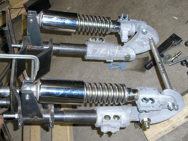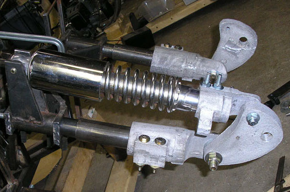Coming together, the fork mount bolted to the leading link bolted to the suspension mount.