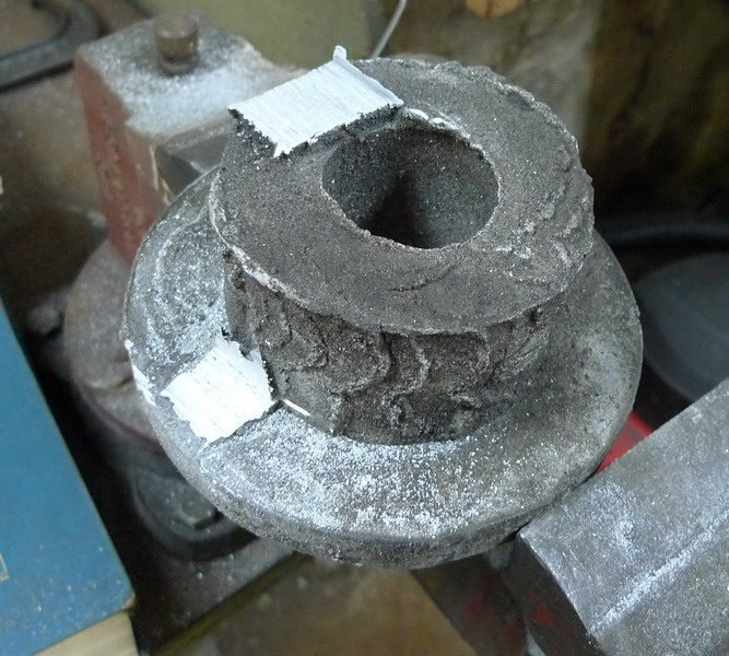 First, I had to cast the new hubs, and first was the smaller of the two. Here is the kiln in operation getting ready for the pour https://youtu.be/-nSYxvkm4pI