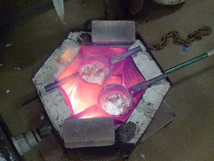 For the next piece, I had to built an additional crucible and pour both simultaneously with a friends help. This is the largest piece I've poured yet.