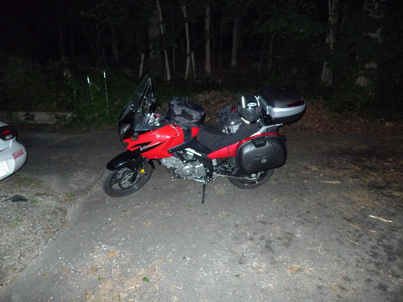 The V-Strom ready for the trip, including now a Givi Top case with integrated brake lights, among many other modifications