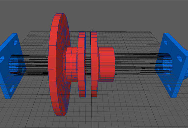 Anyway, back to the Akira Bike project! The previous entry detailed the construction of the two spindle mounts, in this entry, I worked on the two opposing hub mounts. The Blue parts are the spindle mounts, the Red are the opposing hubs completed in this update.