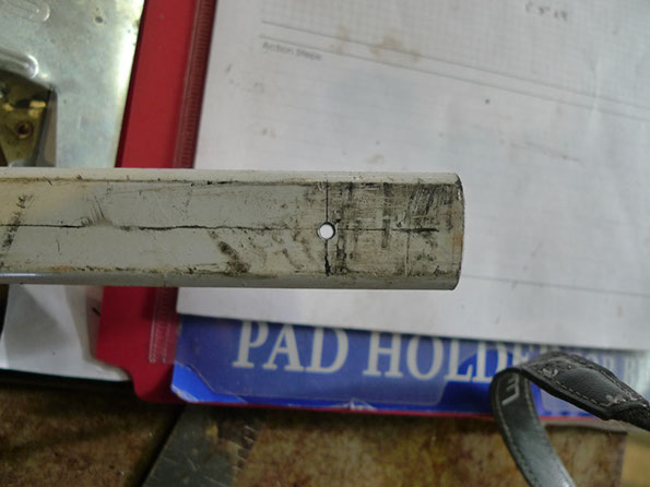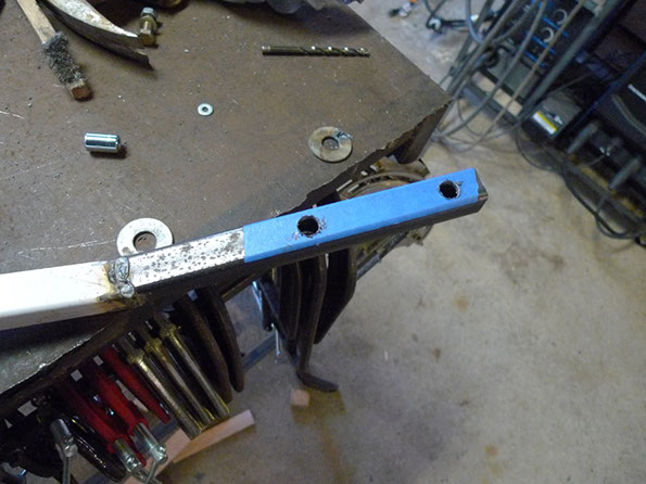 Now the next two bars are drilled, but only at the bottom, the upper two holes have to be lined up precisely with the existing pair.